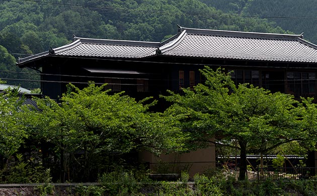 昼神温泉郷の阿智川沿いに佇む大門